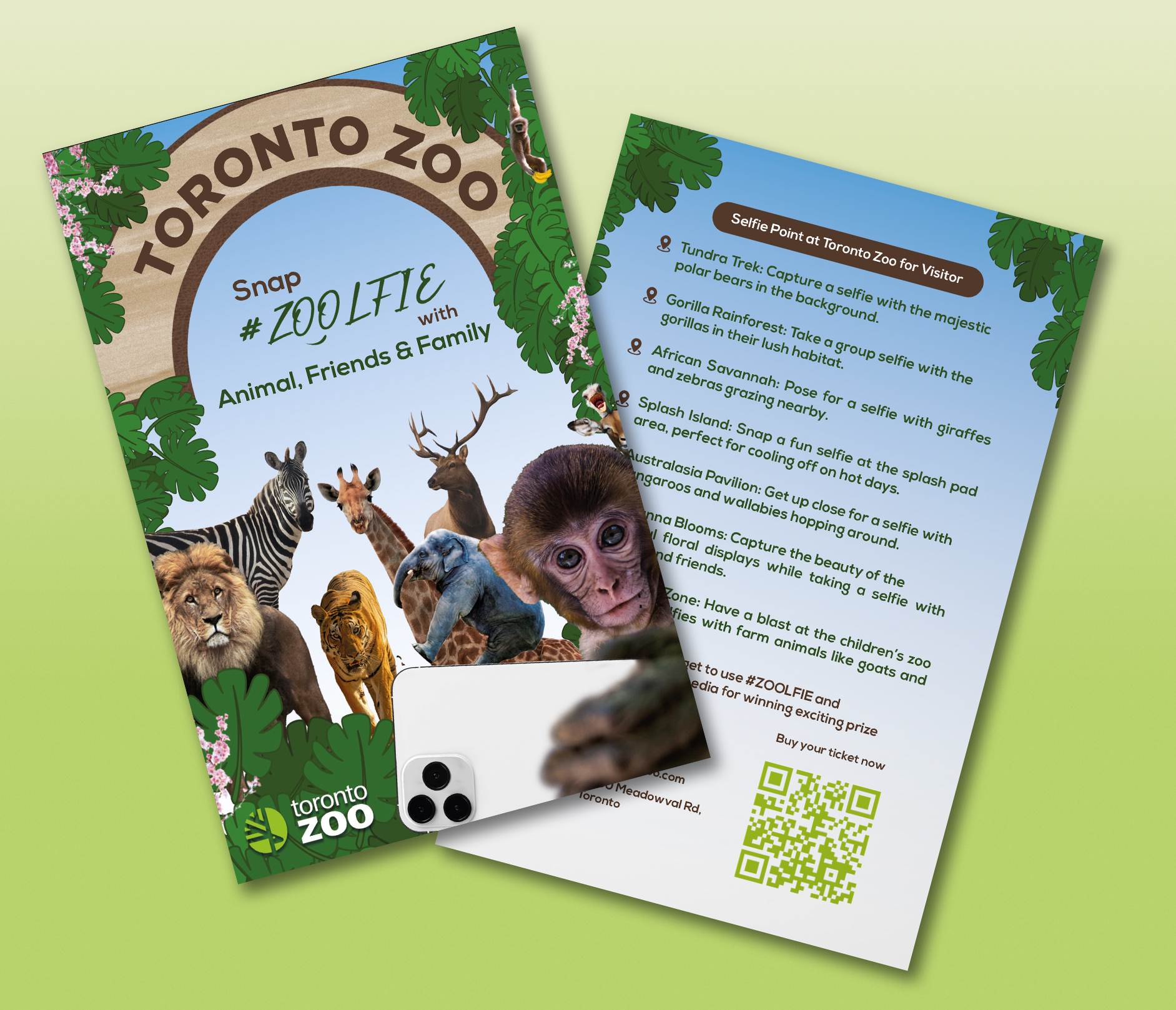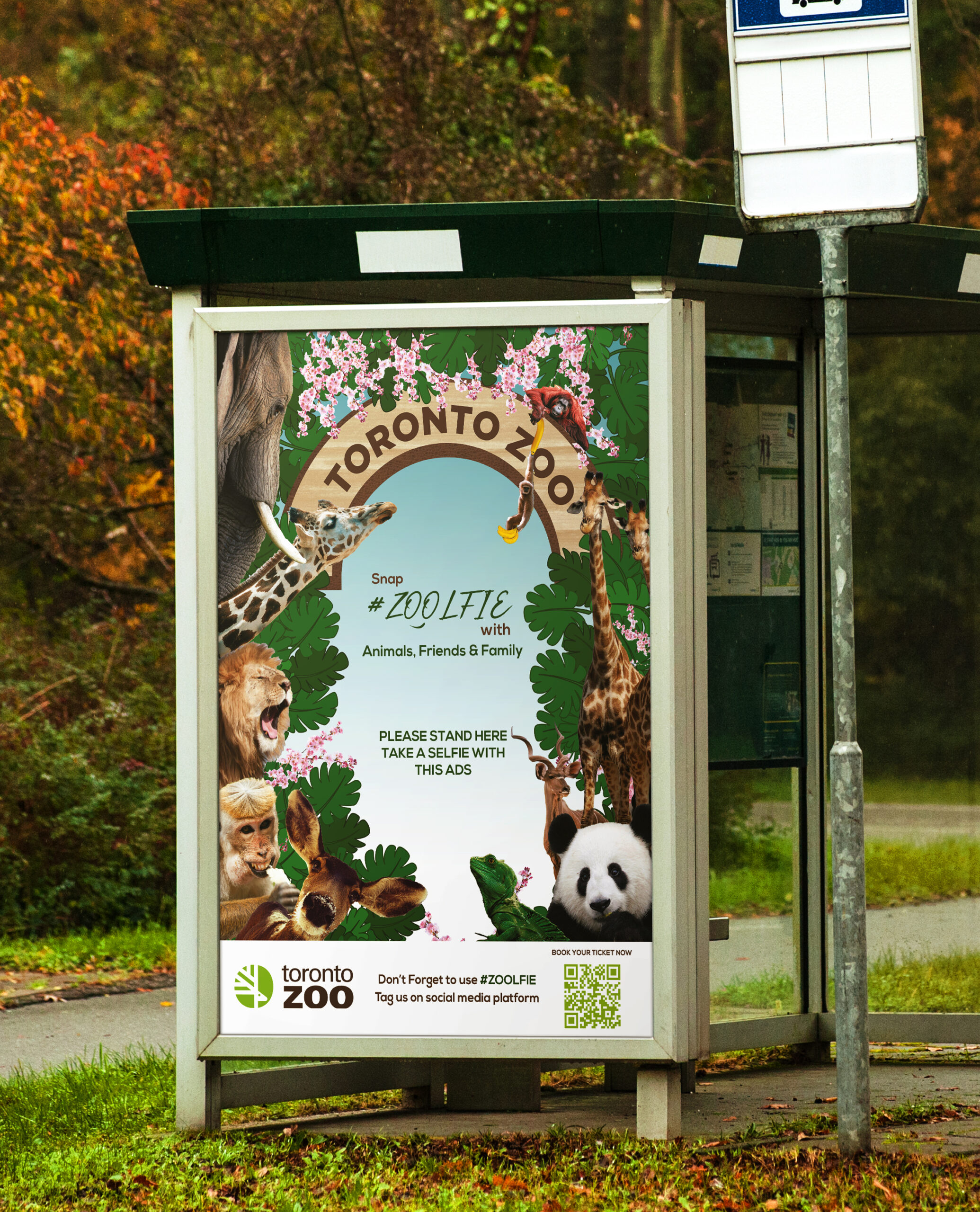 I designed an engaging graphic for the Toronto Zoo advertisement that showed people taking selfies with different zoo animals, capturing the pleasure and excitement of the occasion. This design encourages everyone to create enduring memories with the animals and emphasizes the campaign engaged, exciting mindset.